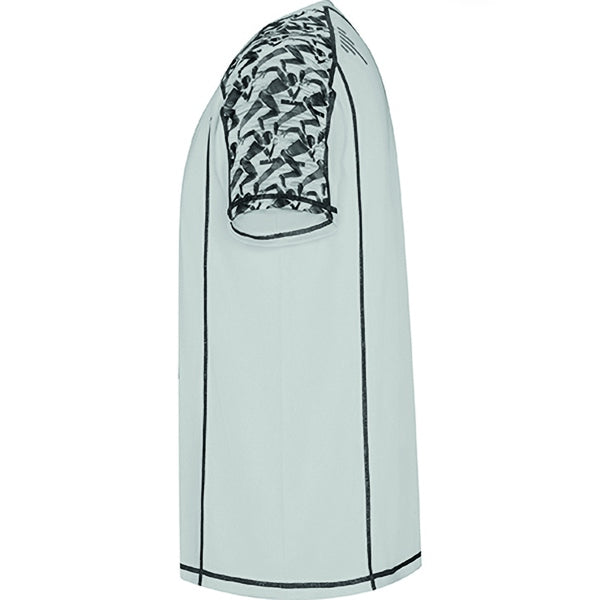 Camiseta técnica manga ranglan unisex con paneles sublimados transpirable. Costuras remalladas a contraste. Cuello redondo y cubrecosturas del mismo tejido al tono. Etiqueta tejida ECO. Certificado GRS.