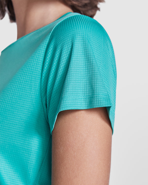 Camiseta técnica manga corta entallada transpirable. Roly Control Dry. Antibacteriano. Faldón trasero. Costuras laterales adelantadas. Cuello redondo y cubrecosturas del mismo tejido al tono. Certificado GRS.