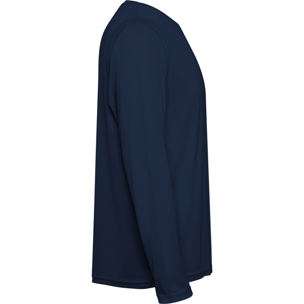 Camiseta técnica manga larga transpirable. Roly Control Dry. Antibacteriano. Faldón trasero. Costuras laterales adelantadas. Cuello redondo y cubrecosturas del mismo tejido al tono. Certificado GRS.