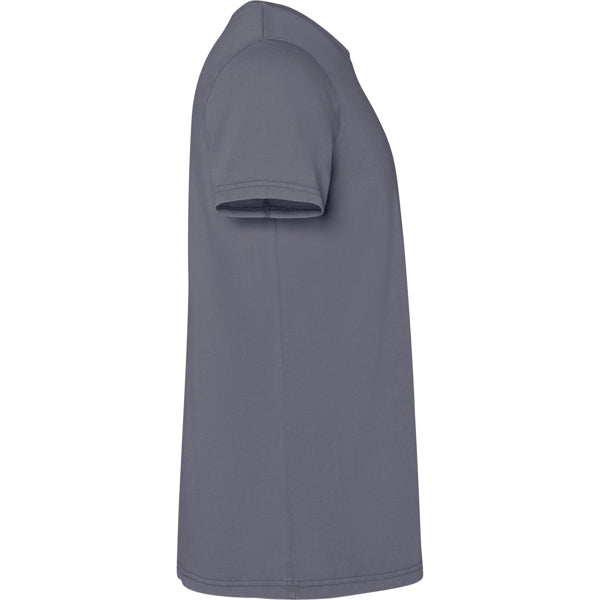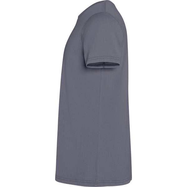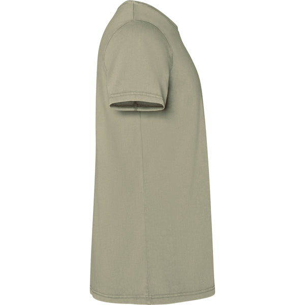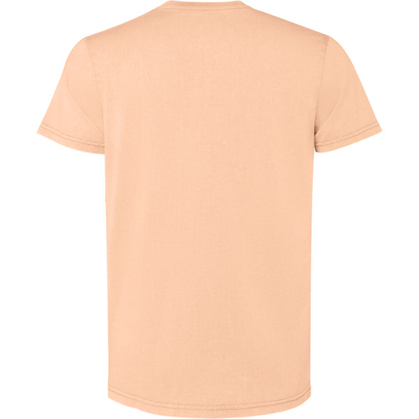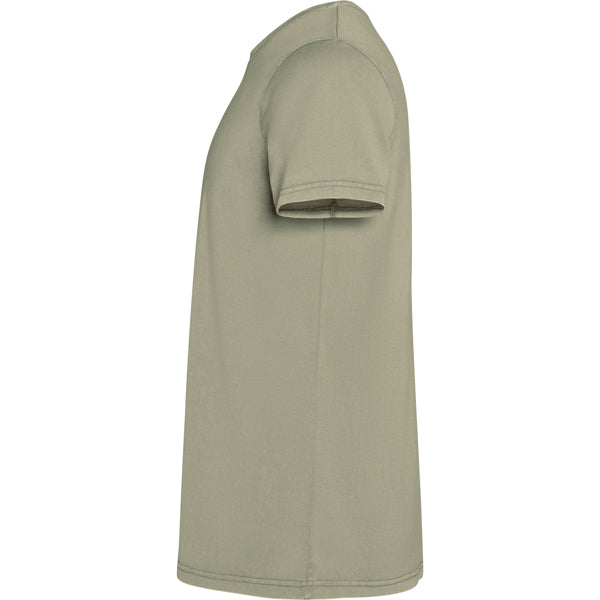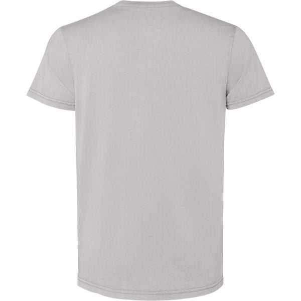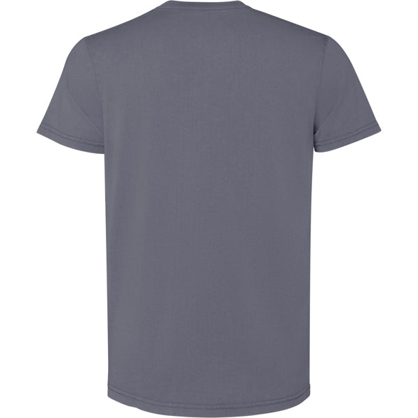 Camiseta man de manga corta en algodón peinado efecto lavado. Cuello redondo en canalé 1x1. Cubrecosturas en cuello del mismo tejido. Costuras dobles en laterales y sisas.