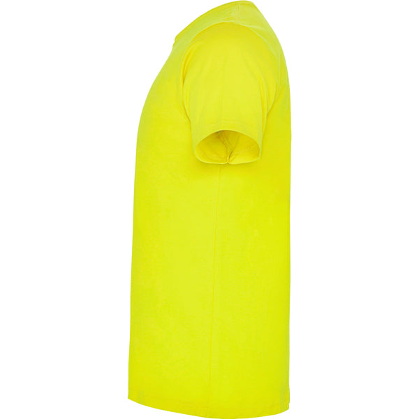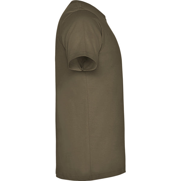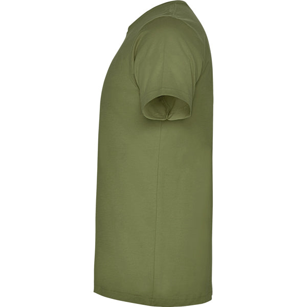 Camiseta de manga corta con costuras laterales. Cuello redondo en canalé 1x1 (4 capas). Cubrecosturas en cuello del mismo tejido.