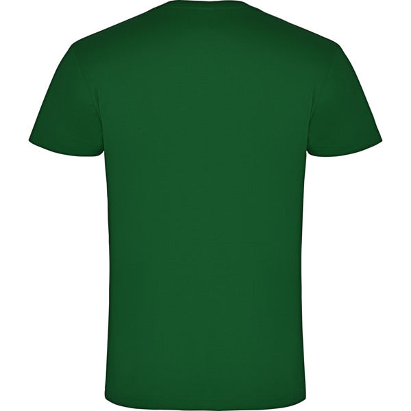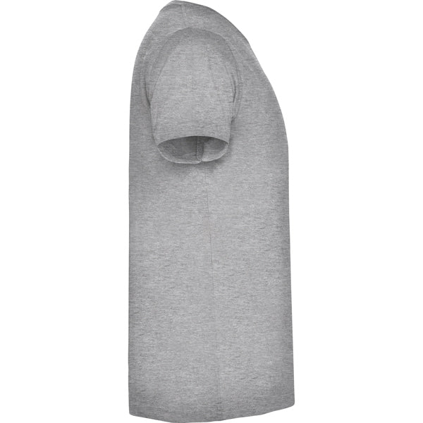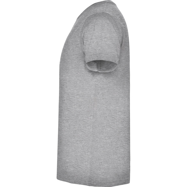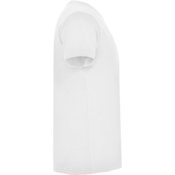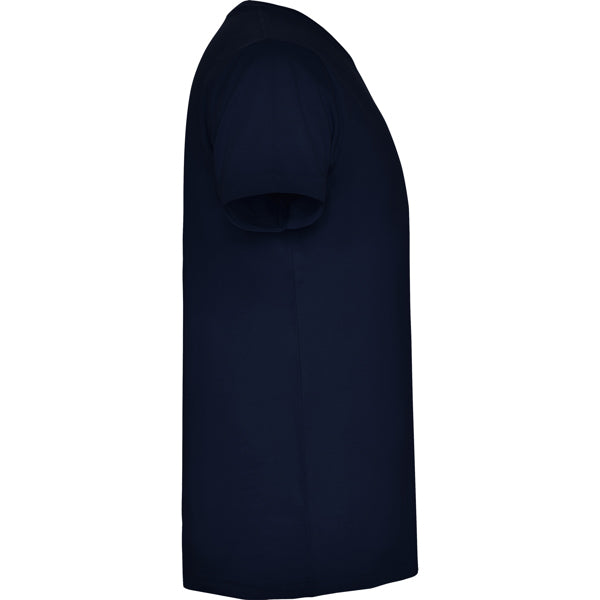 Camiseta de manga corta tubular. Cuello en pico en canalé 1x1. Cubrecosturas en cuello del mismo tejido.