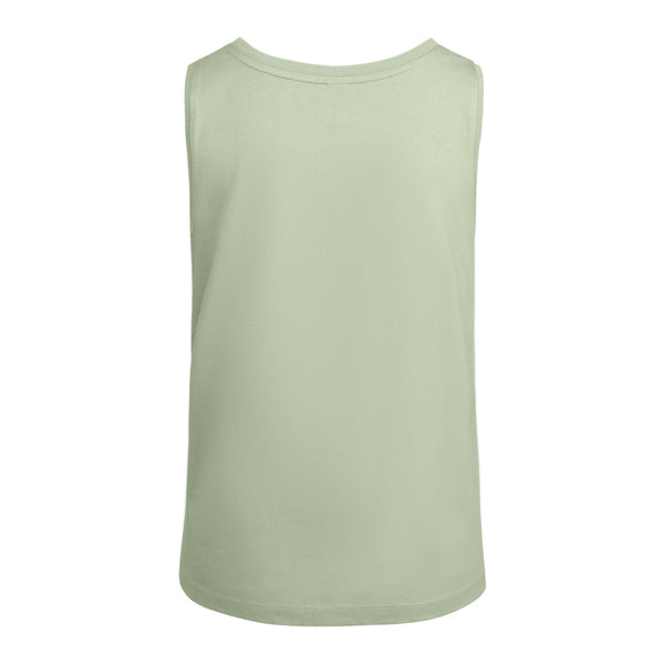 Camiseta de tirantes ancho de corte holgado. Cuello redondo y sisas en canalé 1x1. Bajo en forma redondeada. Cubrecosturas en cuello del mismo tejido.