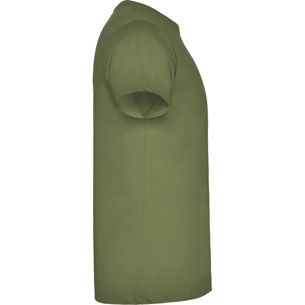 Camiseta de manga corta con costuras laterales. Algodón peinado. Cuello redondo en canalé 1x1 (4 capas). Cubrecosturas en cuello del mismo tejido.