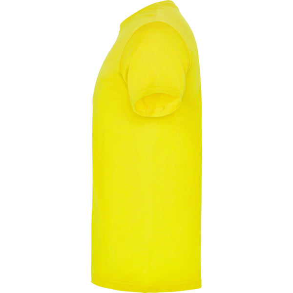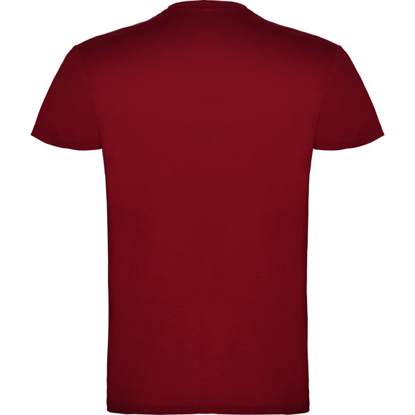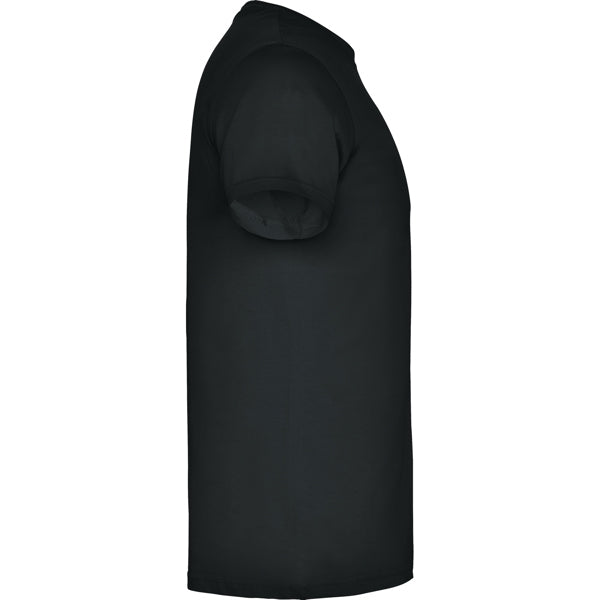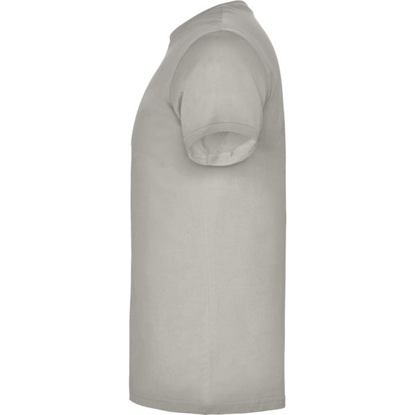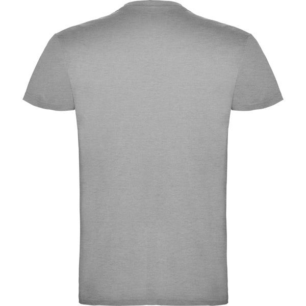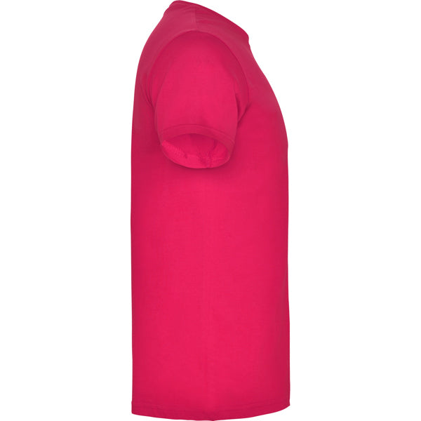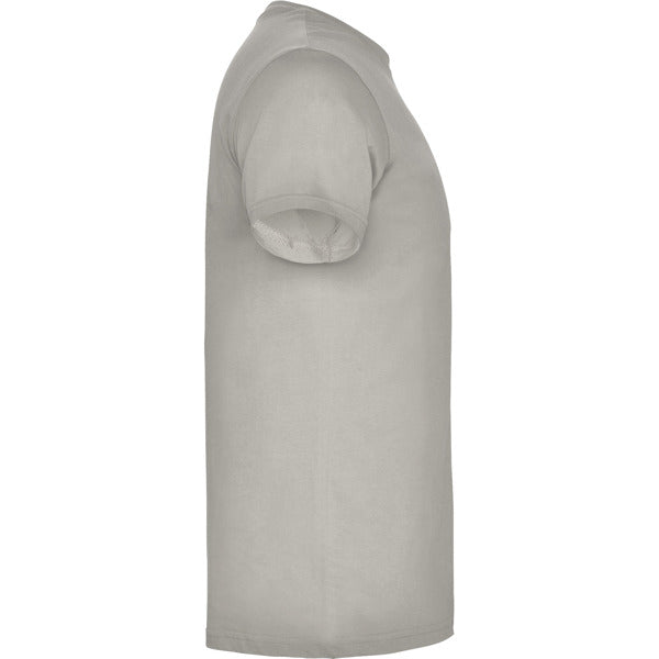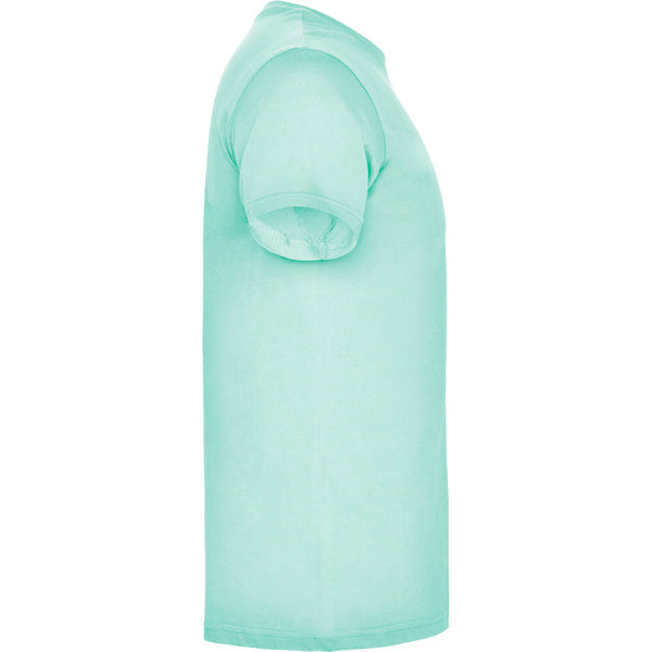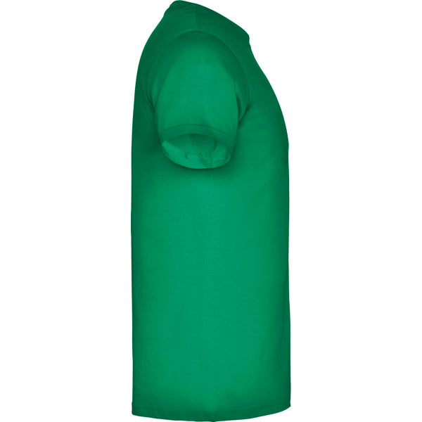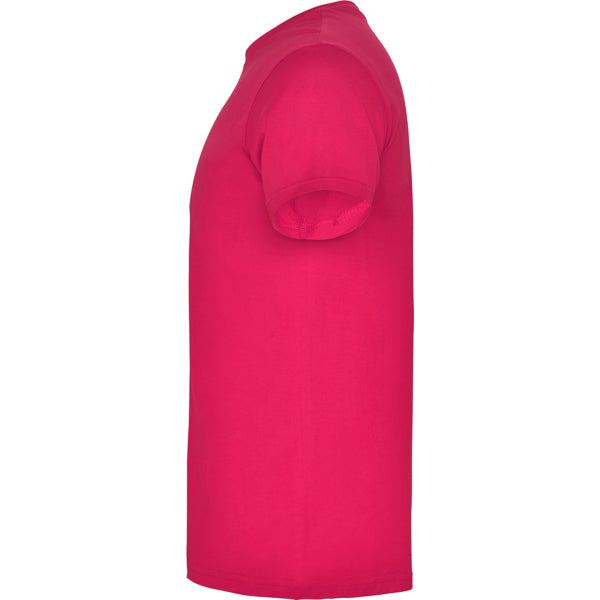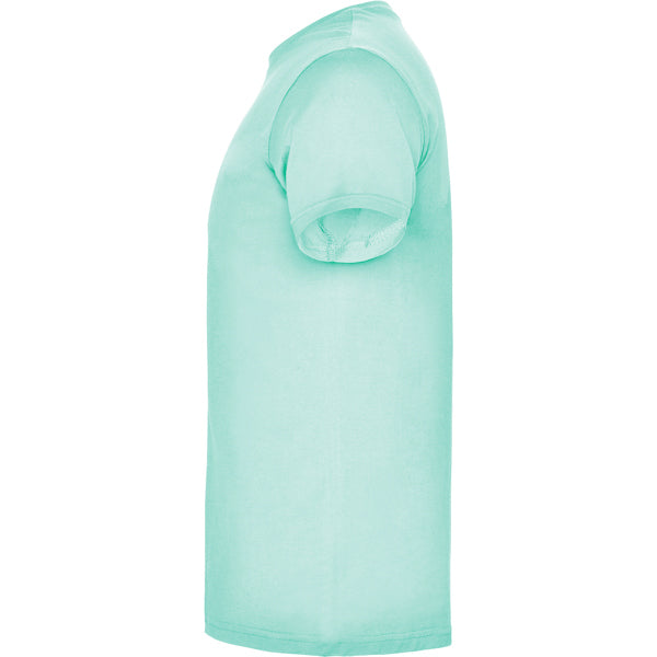 Camiseta de manga corta tubular en tallas de adulto y costuras laterales en tallas de niño. Cuello redondo en canalé 1x1. Cubrecosturas en cuello del mismo tejido.