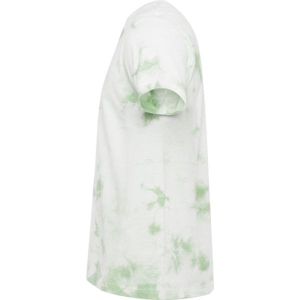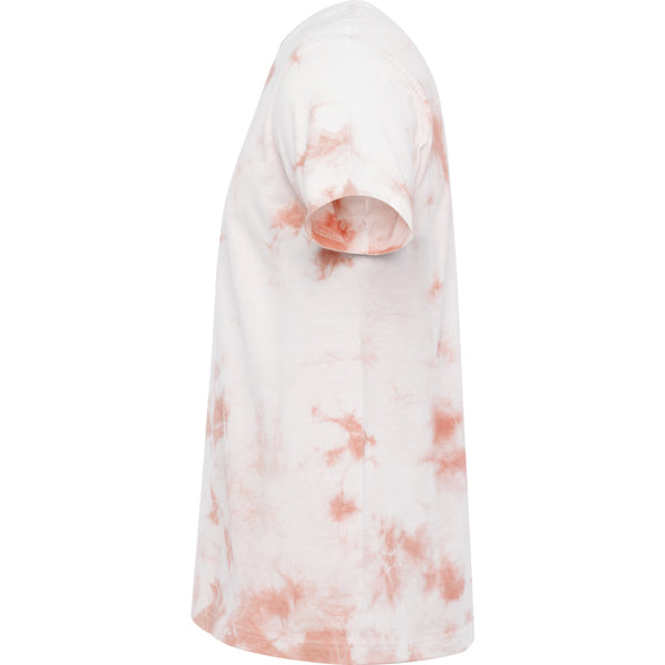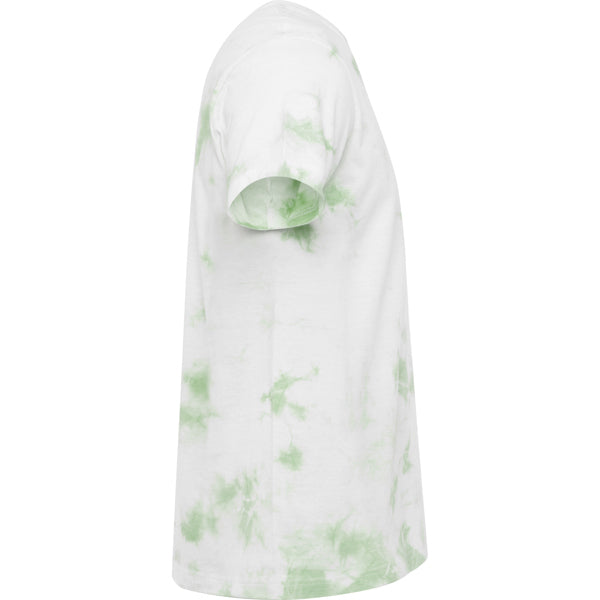 Camiseta tubular de manga corta unisex efecto Tie-Dye. Cuello redondo en canalé 1x1 con cubre costuras en cuello. El acabado y la tonalidad de esta prenda puede variar dentro de un mismo tono.