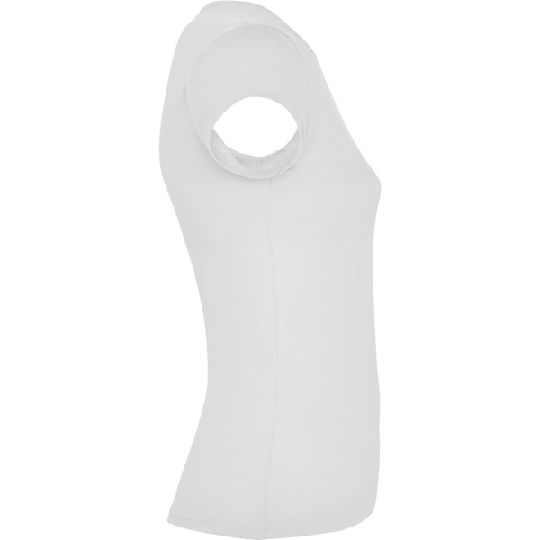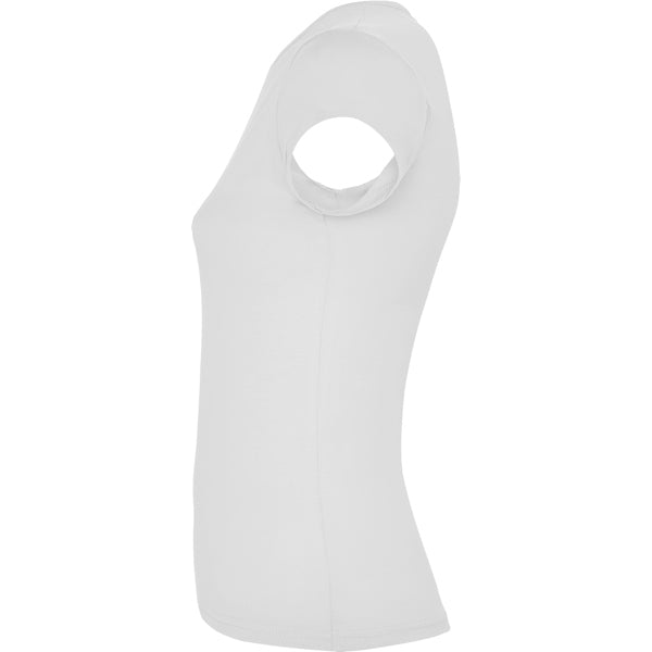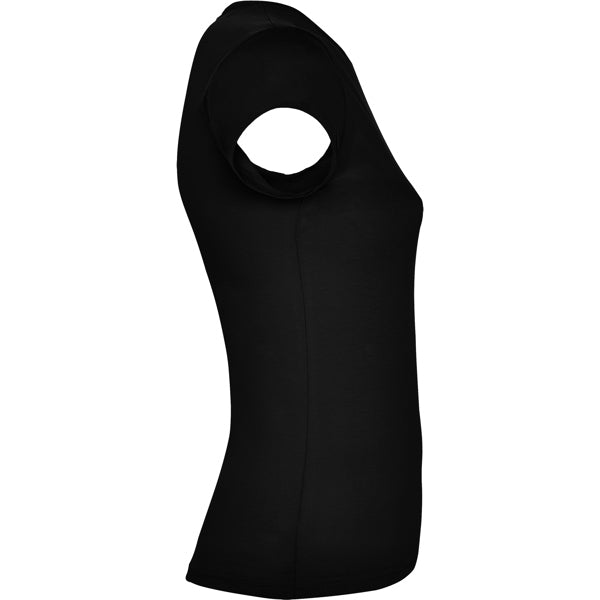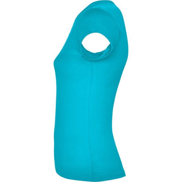 Camiseta de manga corta con elastano entallada en cintura. Cuello redondo con ribete al tono del mismo tejido.