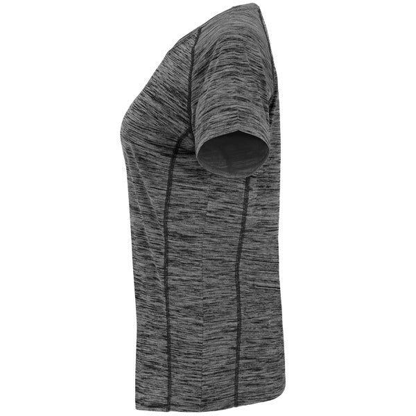 Camiseta técnica manga ranglan entallada transpirable. Paneles laterales con costuras anti roce. Cuello redondo y cubrecosturas del mismo tejido al tono.