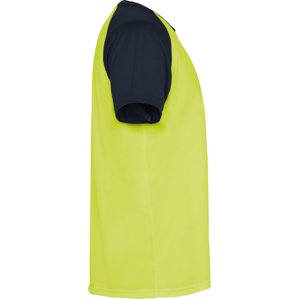 Camiseta técnica manga ranglan unisex transpirable bicolor. Combinación de color. Cuello redondo y cubrecosturas del tejido de las mangas.