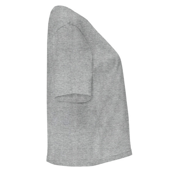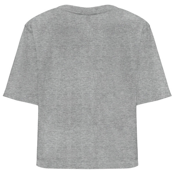 Camiseta manga corta con talle corto y holgado. Cuello redondo en canalé 1x1 ancho. Cubrecosturas en cuello del mismo tejido.