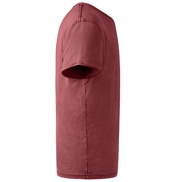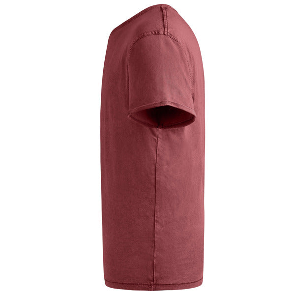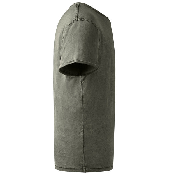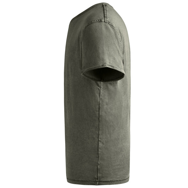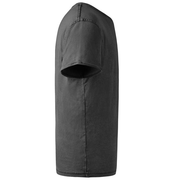 Camiseta de manga corta con costuras laterales efecto lavado. Algodón peinado. Cuello redondo en canalé 1x1. Cubrecosturas en cuello del mismo tejido. Costuras dobles en laterales y sisas. Costuras decorativas en mangas y bajo y detalle de costuras de refuerzo en dobladillos.