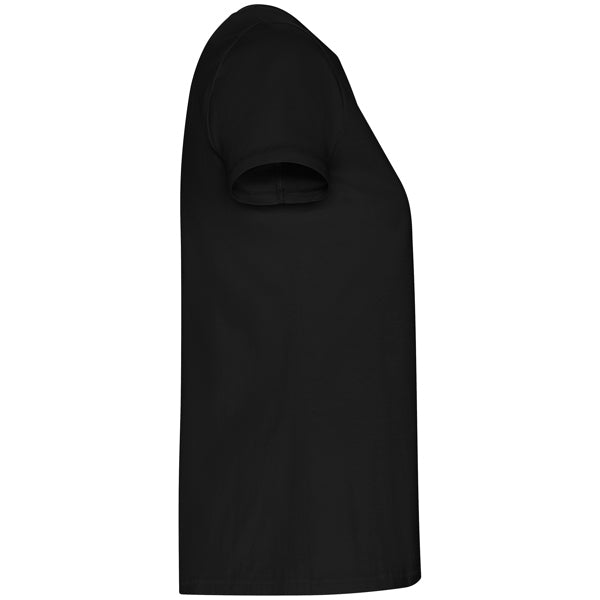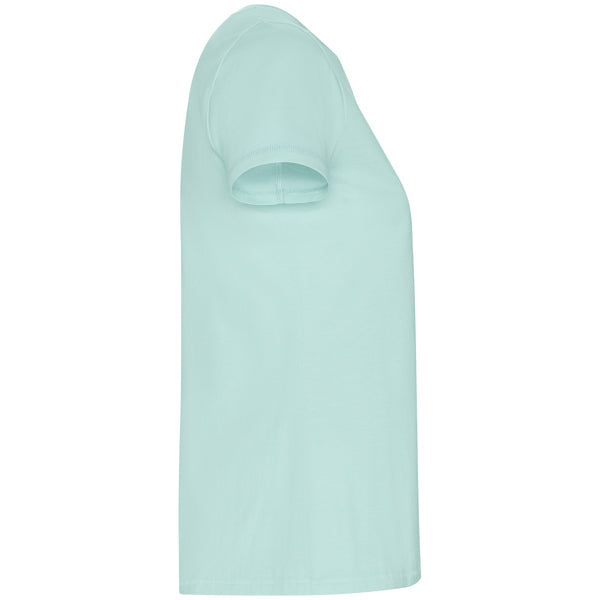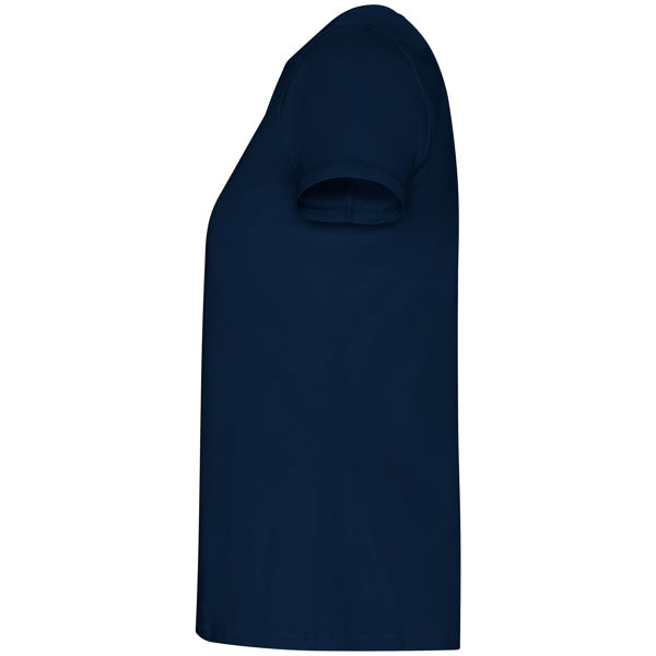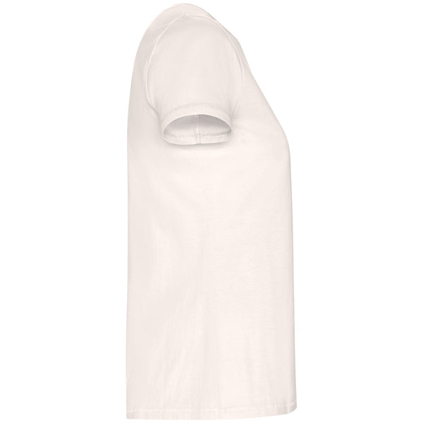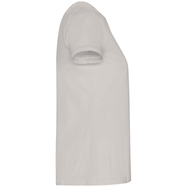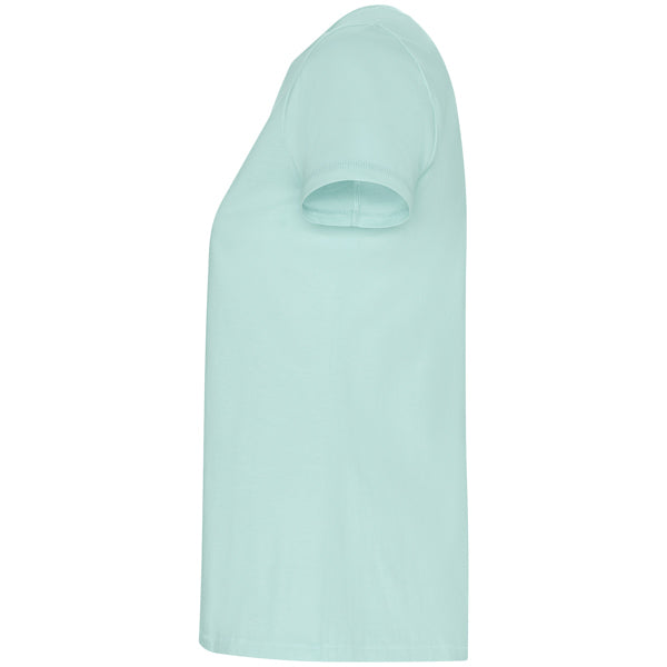Camiseta de manga corta de algodón peinado orgánico entallada en cintura con certificado GOTS. Cuello redondo en canalé 1x1. Cubrecosturas en cuello del mismo tejido. Costuras decorativas al tono. Certificado GOTS.