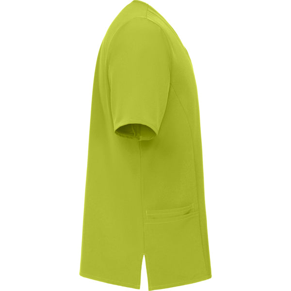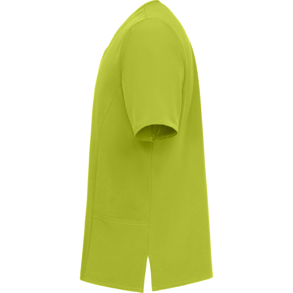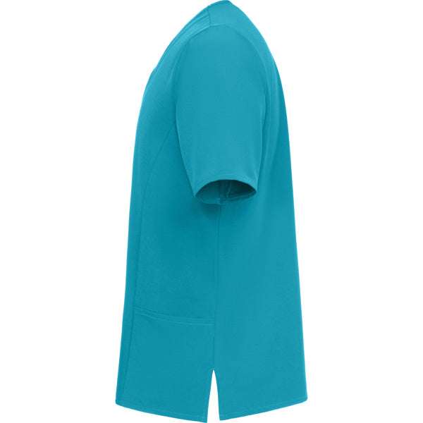 Casaca sanitaria de manga corta.· Microfibra.· Cuello de pico con escote cruzado.· Paneles laterales.· Dos bolsillos laterales y uno interno en el bolsillo derecho.· Aberturas laterales en bajo.· Etiquetado Roly WRK exterior.