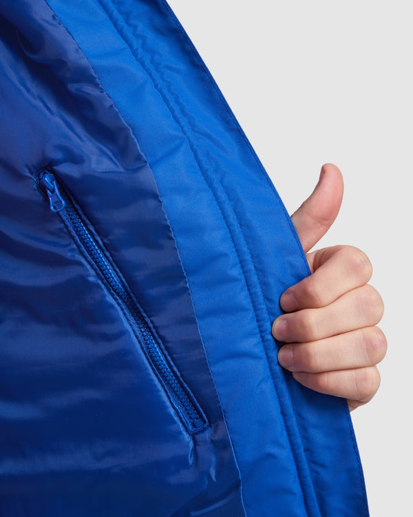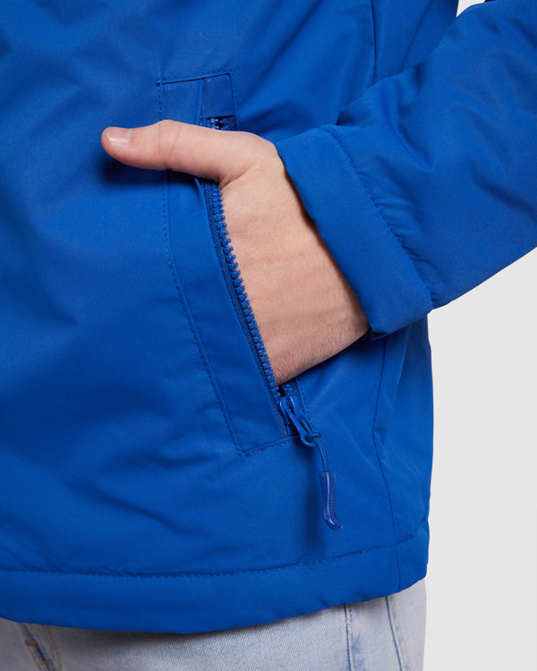 Chaqueta acolchada impermeable.· Cuello alto con interior forrado en punto canalé 2x2. · Cremallera frontal a tono con protector de barbilla. · Dos bolsillos laterales de doble función, un bolsillo abierto y otro con cremallera. · Un bolsillo con cremallera y tapeta en manga izquierda. · Bolsillo interior con cremallera en el lado izquierdo. · Ajustadores en el interior del bajo.· Acceso interior para marcaje.