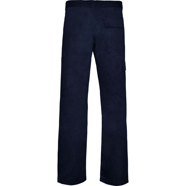 Pantalón largo multibolsillos.· Tejido resistente.· Cintura engomada en la parte trasera con trabillas.· Dos pinzas bajo las dos trabillas delanteras.· Dos bolsillos frontales a la cadera.· Un bolsillo plaqué trasero con tapeta y cierre de velcro en el lado derecho.· Un bolsillo cargo con tapeta y cierre de velcro en pierna derecha.· Etiquetado Roly WRK exterior.