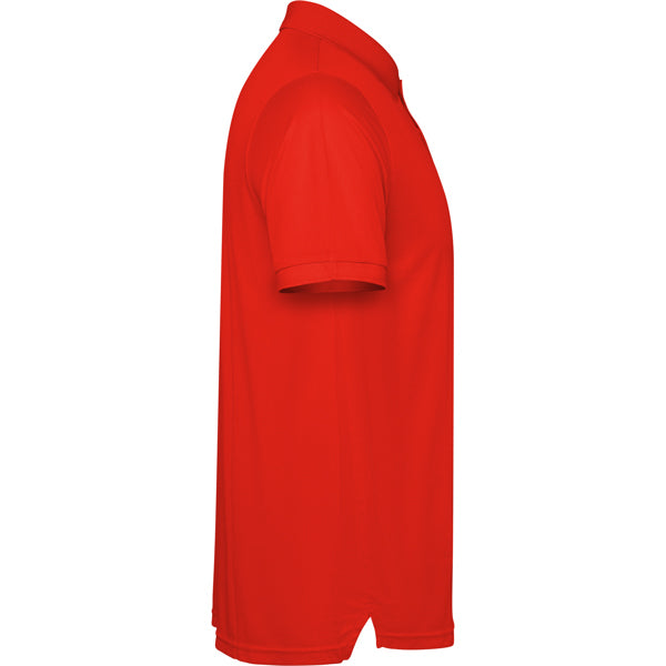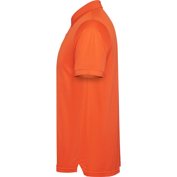 Polo técnico manga corta transpirable. Roly Control Dry. Antibacteriano. Costuras laterales adelantadas con aperturas. Cuello y puños rib 1x1 al tono. Tapeta con botones a presión al tono. Cubrecosturas del mismo tejido al tono. Certificado GRS.