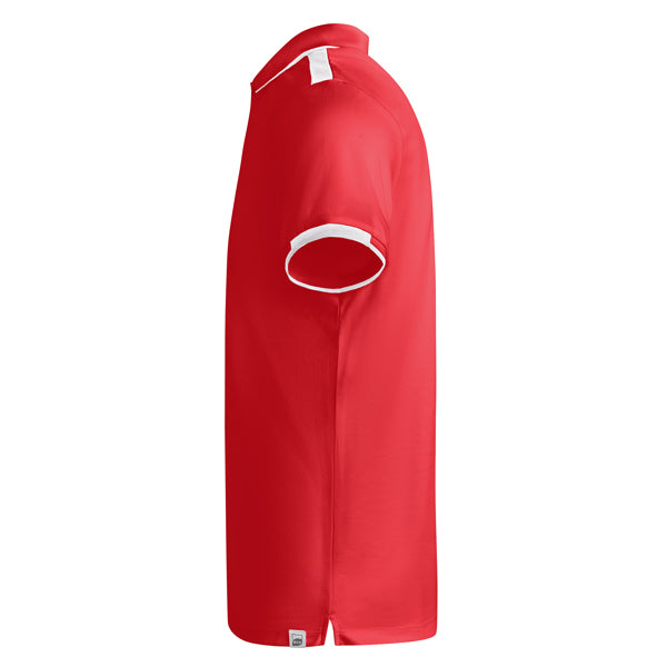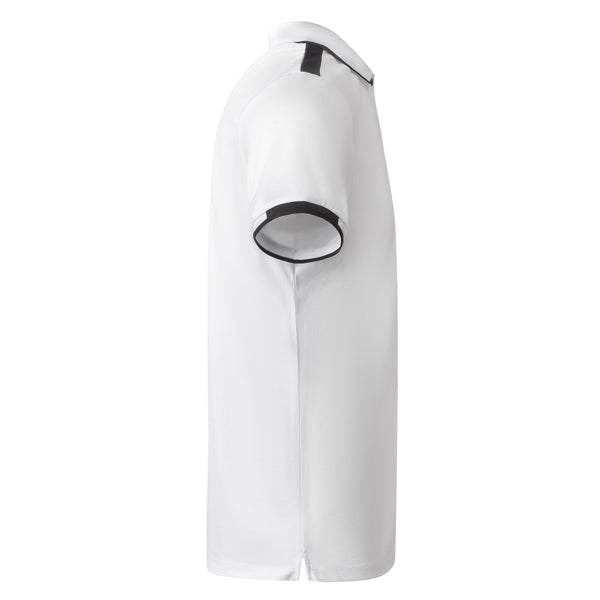 Polo técnico manga corta transpirable bicolor. Antibacteriano. Aperturas laterales. Pieza en hombros y bocamanga a contraste. Cuello y puños rib 1x1 al tono con detalle a contraste. Tapeta con botones a presión, uno visible a contraste de color y otro invisible dentro de la tapeta. Cubrecosturas del mismo tejido a contraste. Certificado GRS.