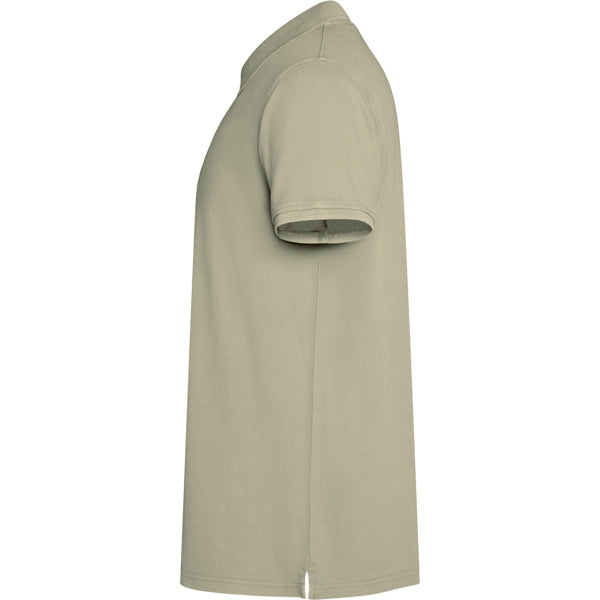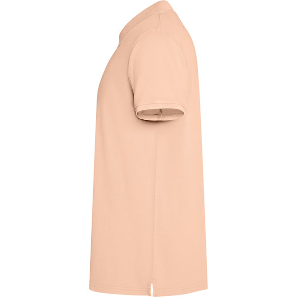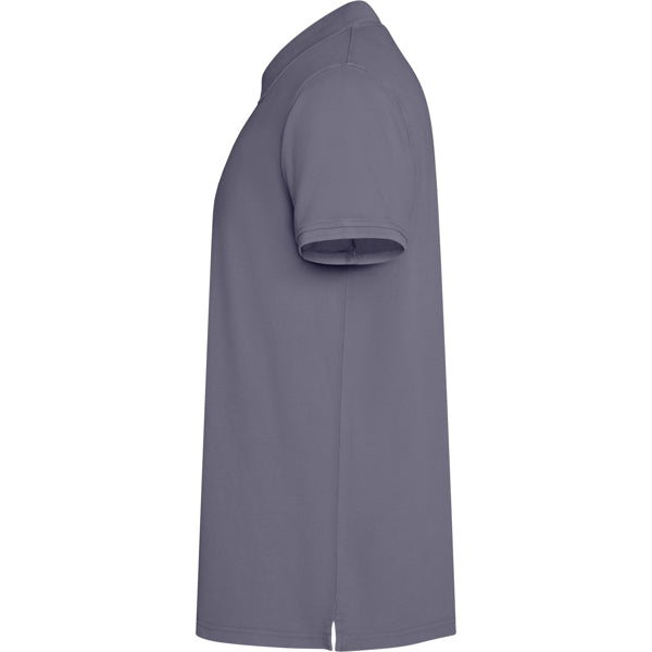 Polo unisex de manga corta en punto piqué. Cuello y mangas tejidos en 1x1. Tapeta de 3 botones. Cubrecosturas en cuello del mismo tejido. Aberturas laterales en bajo.