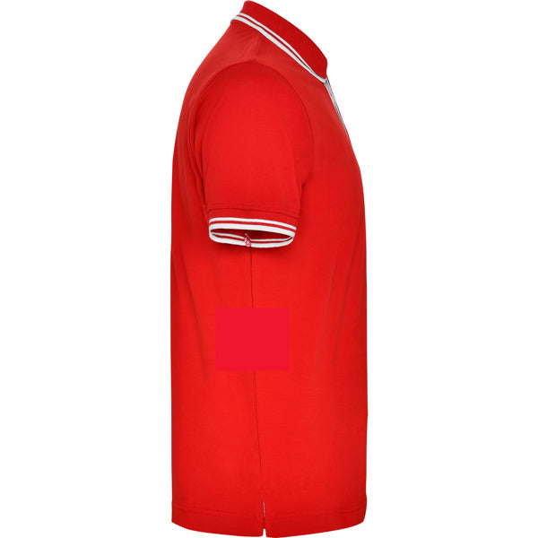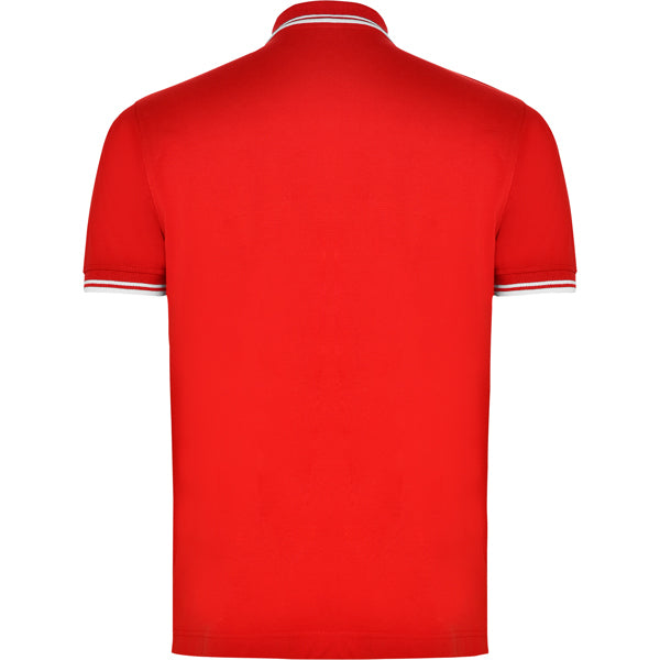 Polo de manga corta de algodón peinado. Punto piqué. Cuello y mangas tejidos 1x1 a contraste de color. Tapeta de 3 botones a contraste de color. Cubrecosturas en cuello del mismo tejido. Aperturas laterales en bajo.