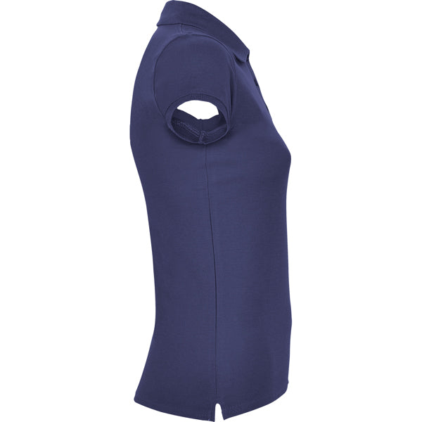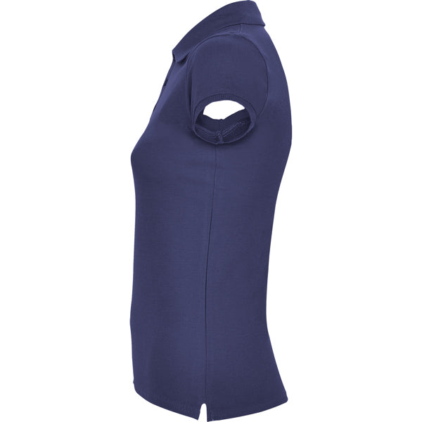 Polo de manga corta de algodón entallado en cintura. Punto piqué. Cuello y mangas tejidos en 1x1. Tapeta de 3 botones. Cubrecosturas en cuello del mismo tejido. Aperturas laterales en bajo.