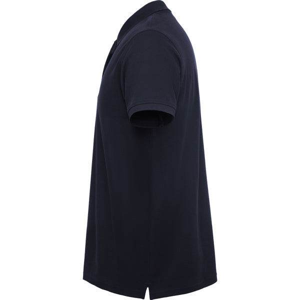 Polo manga corta de piqué. · Cuello y mangas en rib 1x1. · Tapeta con cierre velcro. · Cubrecosturas del mismo tejido. · Aperturas laterales.