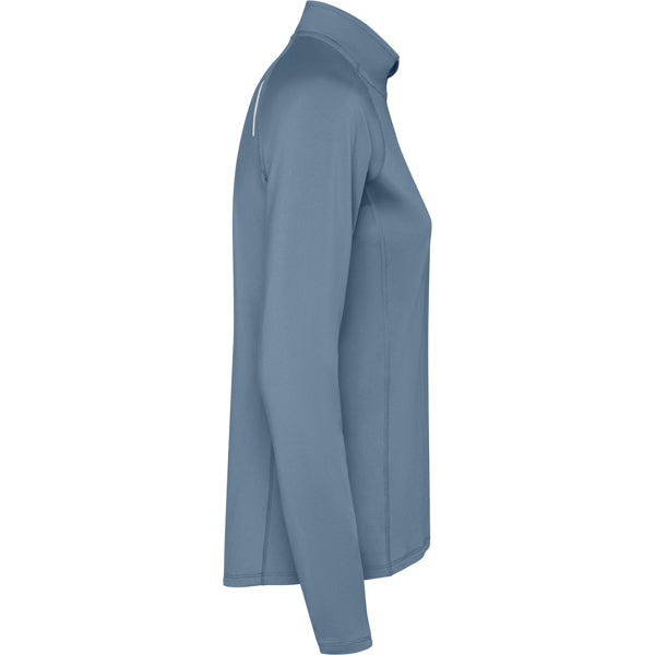 Sudadera técnica perchada manga ranglan entallada y media cremallera invertida con detalle reflectante. Cubrecosturas en cuello interno. Puños con ojal para pulgar. Detalles reflectantes en la espalda. Faldón trasero. Certificado GRS.