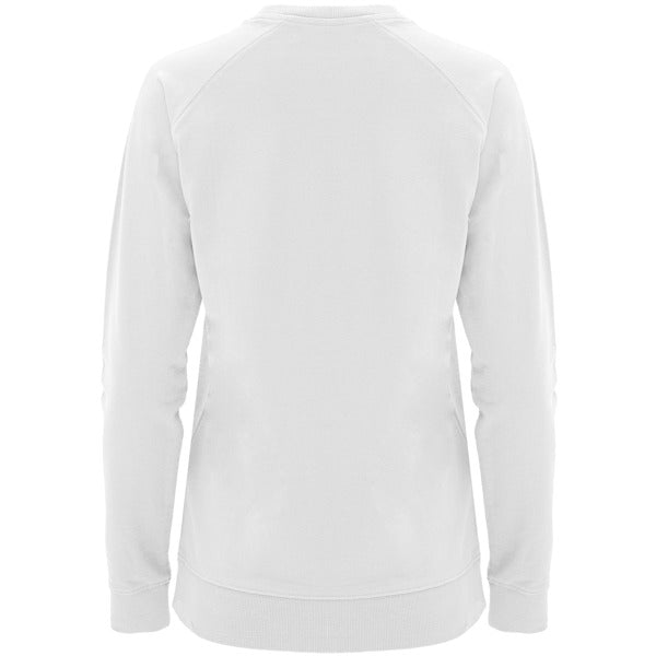 Sudadera entallada de manga larga estilo ranglán. Con cuello, puños y cintura, en canalé 2x1. Cuello redondo con cubrecosturas de refuerzo en el interior del cuello. Detalle frontal de costuras cruzadas, con remallado en tejido canalé 2x1.