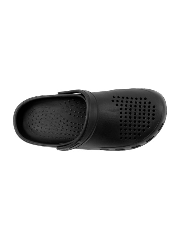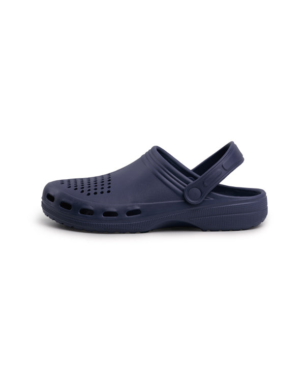 Zueco multifuncional de material confortable con agujeros de ventilación y tira de sujeción de doble posición. Material: EVA.
